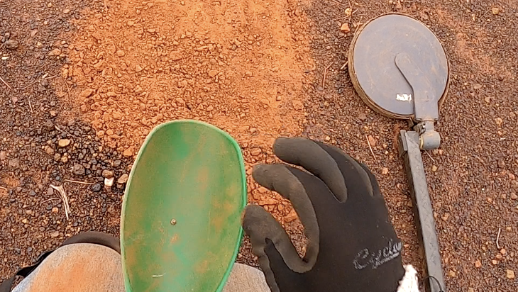 Bouncy bouncy. Now that we both had detectors, we had to rethink how we operated. Even though we were part of a group, safety is still vitally important as getting lost in the bush is a real possibility and not something to be recommended. When we had just the one viable detector, we worked together, mostly it was Debbie operating the machine while I did the digging (she calls me her “pick bitch”) and operated the drone or the GoPro. As we were both together having the one satellite navigation unit was ok. Unfortunately, it is not easy to use two detectors in close proximity without them interfering with each other. There are ways to de-tune them, but it is not always convenient. So, one of us could wander off into the bush quite safely while the other needed to stay in sight of the car. This was not a major problem because I had learned that you were just as likely to find gold next to where you had parked as you were over the hill or behind that distant group of trees.