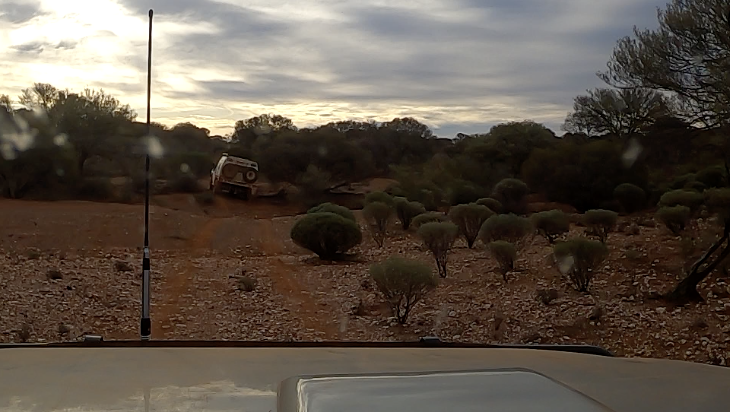 The following day we were led out to try and find a area that Krissy had identified as a potential good spot just a couple klms. away. It is just as well we had retired the Subaru for these trips because this was some serious 4×4 off road driving. It’s funny, if ever I reverse off of our drive at home, a little too fast, Debbie makes such fuss, suggesting that she may have whiplash due to my terrible driving, yet when someone tells her that there is “gold in them there hills” we can bump through gorges and river beds, over rocks and crevices without a murmur, in fact, she actively encourages it, actually it was great fun. When we finally came to a stop, we find ourselves by some hills and some promising looking ground.