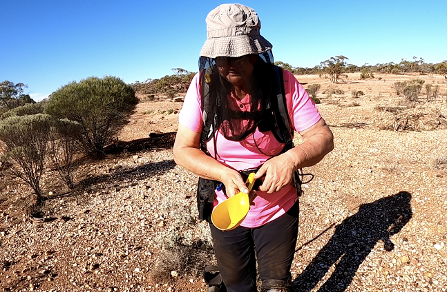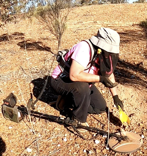 The first day was spend detecting close to the camp, as usual, we were good at finding shotgun pellets and rusty nails but struggled to find any gold targets. This year Greg lent me a SDC2300 which is a proper gold detector, not a relic or treasure machine like our Equinox which had proved to be unsuitable on the highly mineralised ground in this part of WA. The SDC specialises in finding small gold near the surface while Debbie’s GPX is good at finding larger deeper targets.