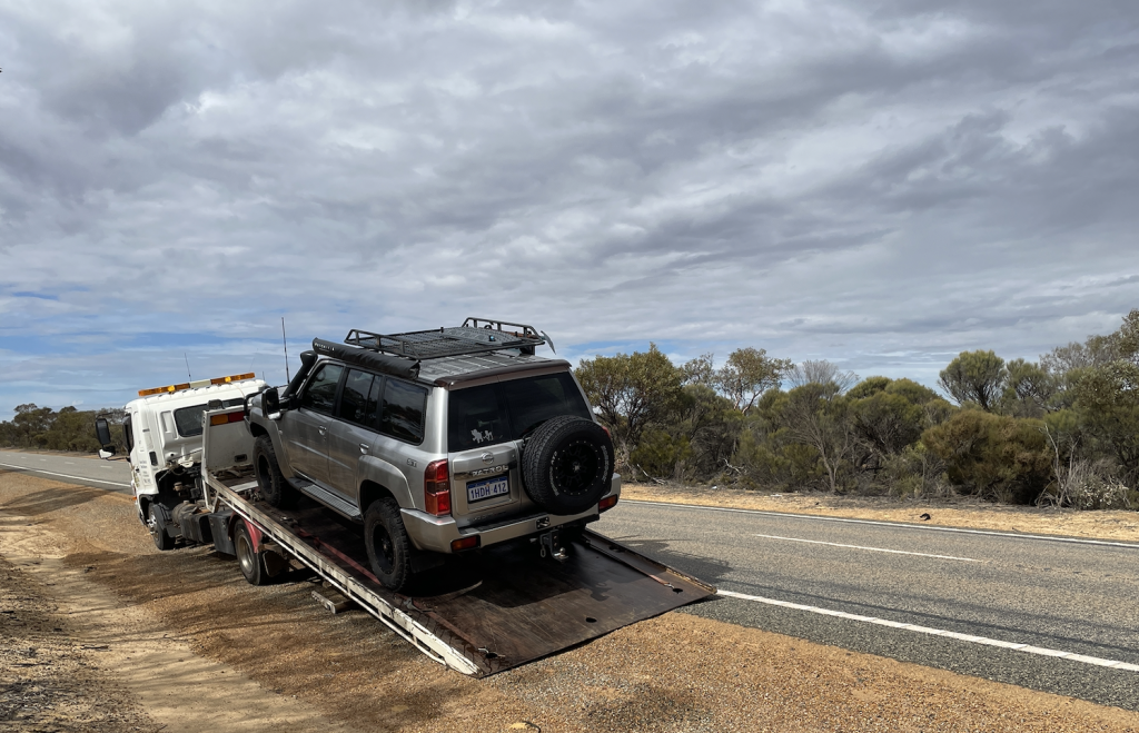 After a bacon sandwich for breakfast and a short stroll to visit the old well, we were on the road again about 8-00 am, after about an hour it went a little south. Plumes of grey smoke and a complete loss of power suggests a broken turbo, but what we don’t know yet is the extent of any engine damage. What we do know is that it cost us $2200-00 to get the car and caravan back to Perth. The car is at a local mechanic, and we are awaiting the call with a diagnosis. Either way, it will not be cheap!