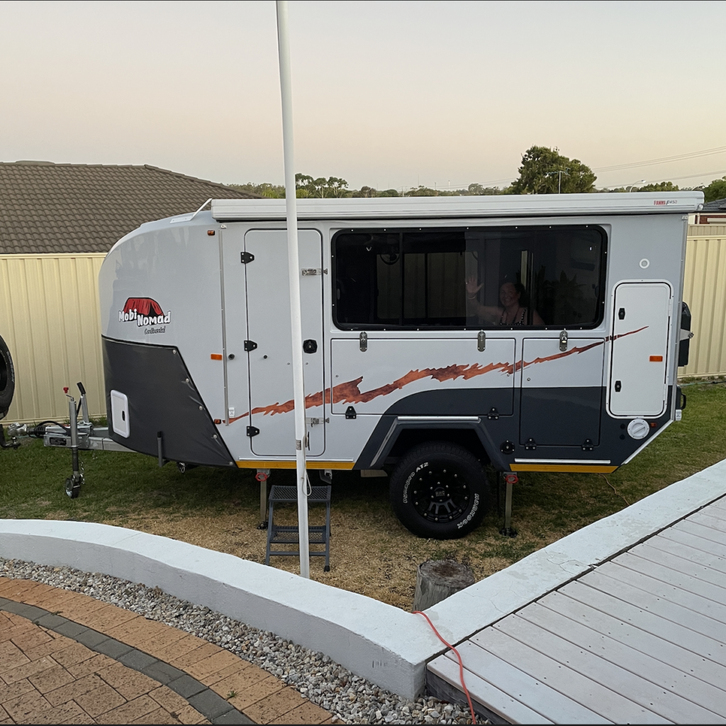 The wait is finally over, our new Mobi Nomad is sitting outside, and preparations are about to start for our inaugural trip in February. I still have lots to learn, especially with regards to reversing the thing onto our drive. Just as I was falling into a deep depression thinking that Mobi would spend the night parked in the street, our truck driving neighbour came home and within minutes guided me back to the perfect spot on our front lawn. I just must make sure he is at home every time we return from a trip.